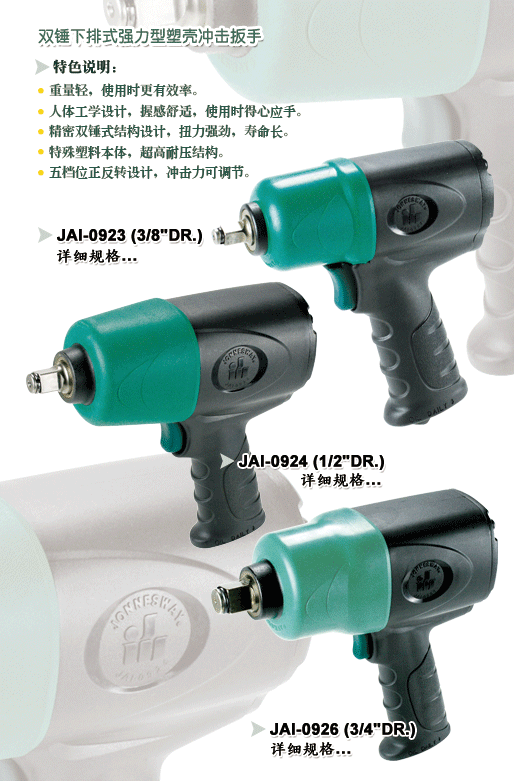 JAI-0926 | 3/4"双锤下排式强力 型塑壳冲击扳手 |