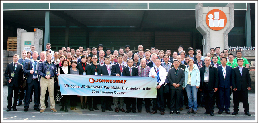 各位强斯威经销商您好,为了让家族伙伴们更加了解 JONNESWAY 的品牌价值与优势还有更了解台湾文化,重威公司10几年来持续不断的举办教育训练,2014年2月17~19日,JONNESWAY 强斯威国际绩优经销商自费来台教育训练,突破2012年8个国家55位经销商来台湾参与教育训练的历史纪录,创下了品牌成立以来来台教育训练最高人数纪录,共有来自8个国家76位经销商与会!在为期3天的训练中,参与训练的每位成员了解到JONNESWAY 的产品优势、融入于JONNESWAY 品牌文化中。